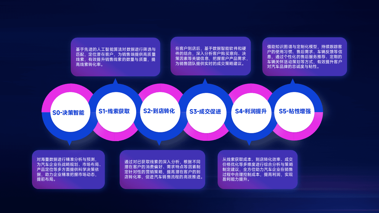 通过拓宽潜在客户来源、、优化线索分配并提高到店转化率,,,,以增强销售效率。。同时,,,,利用线索数据不断优化分析模型,,,有效提升转化率,,,扩大营销影响力。。